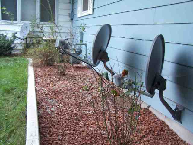 Freshly installed (before cleaning up the wiring) is my Dish 1000 Plus. Beside it is the Dish500 that I was previously using to receive HD from 129°.
